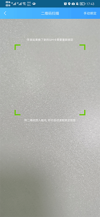 二、将扫码框对准手表菜单中的二维码扫描,待识别后完成绑定操作(第一个绑定手表的监护人,自动成为手表的管理员)