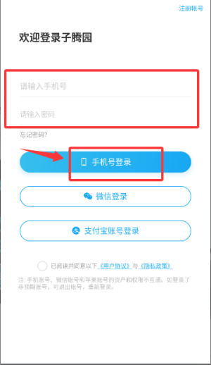 4、返回登录页,可通过输入账号密码或选择手机号快捷登录等方式进入平台。