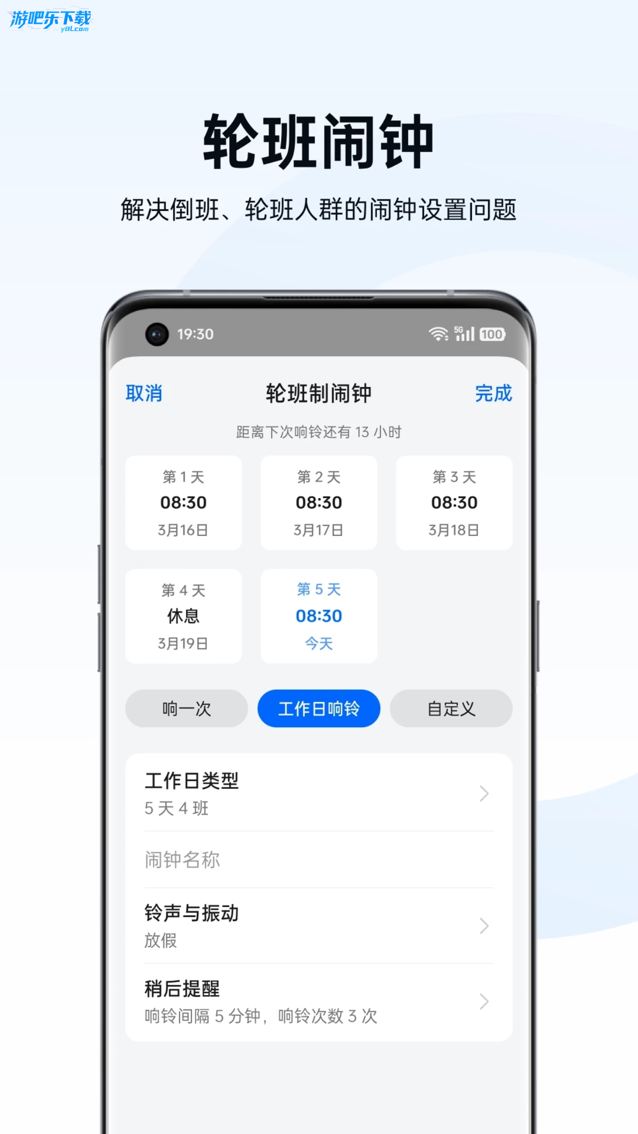 个性化设置丰富,可自定义闹钟名称、铃声(系统音效 / 本地音乐均可),还能调节音量、开启震动,部分机型支持智能渐变音量唤醒。自带贪睡模式(可自定义延迟时间),支持 Breeno 语音快速创建闹钟,全屏起闹 + 横幅通知双重提醒,避免错过重要时刻。