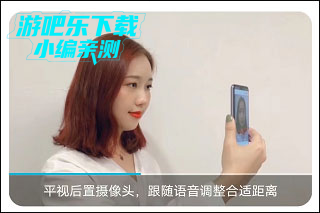 3、翻转手机,平视后置摄像头,跟随语音调整合适距离。