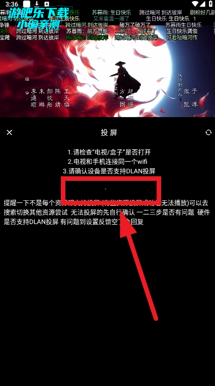 3、后台会自动搜索支持投屏的电视设备,若搜索到家里的设备点击链接后即可投屏;