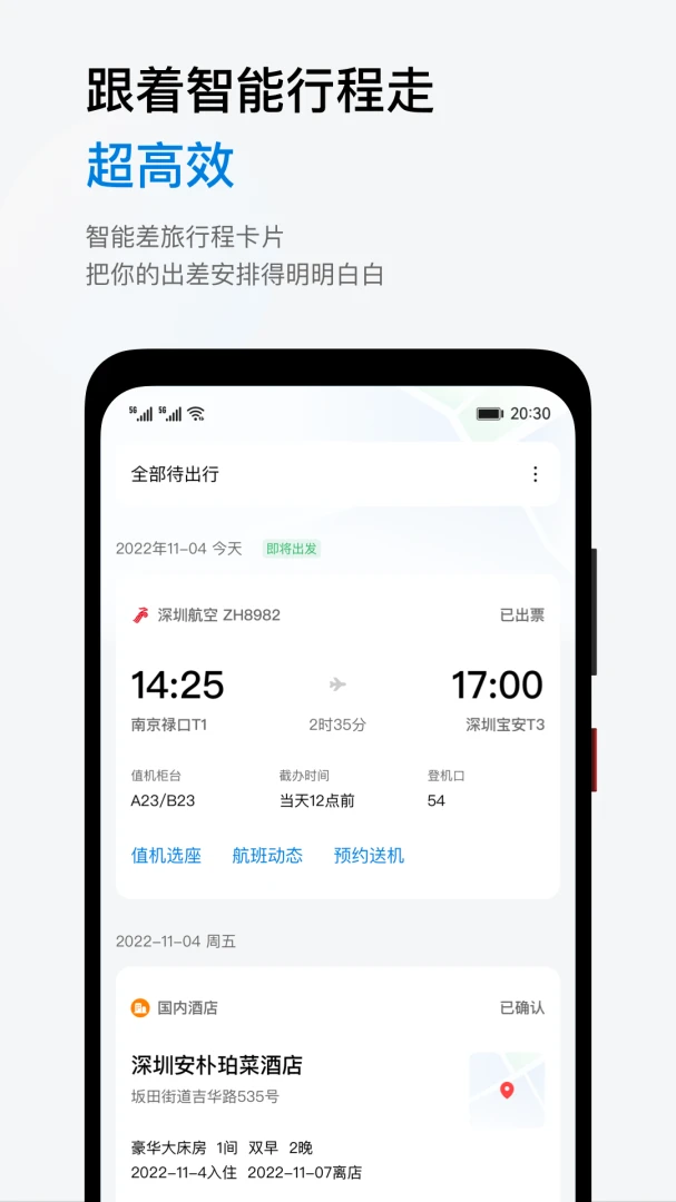 华为慧通差旅App,提供机票、火车票、用车等一站式预订服务。实时航班动态、在线选座值机,购票便捷,支持残军票购买。机票和用车体验优化,助力高效出行。