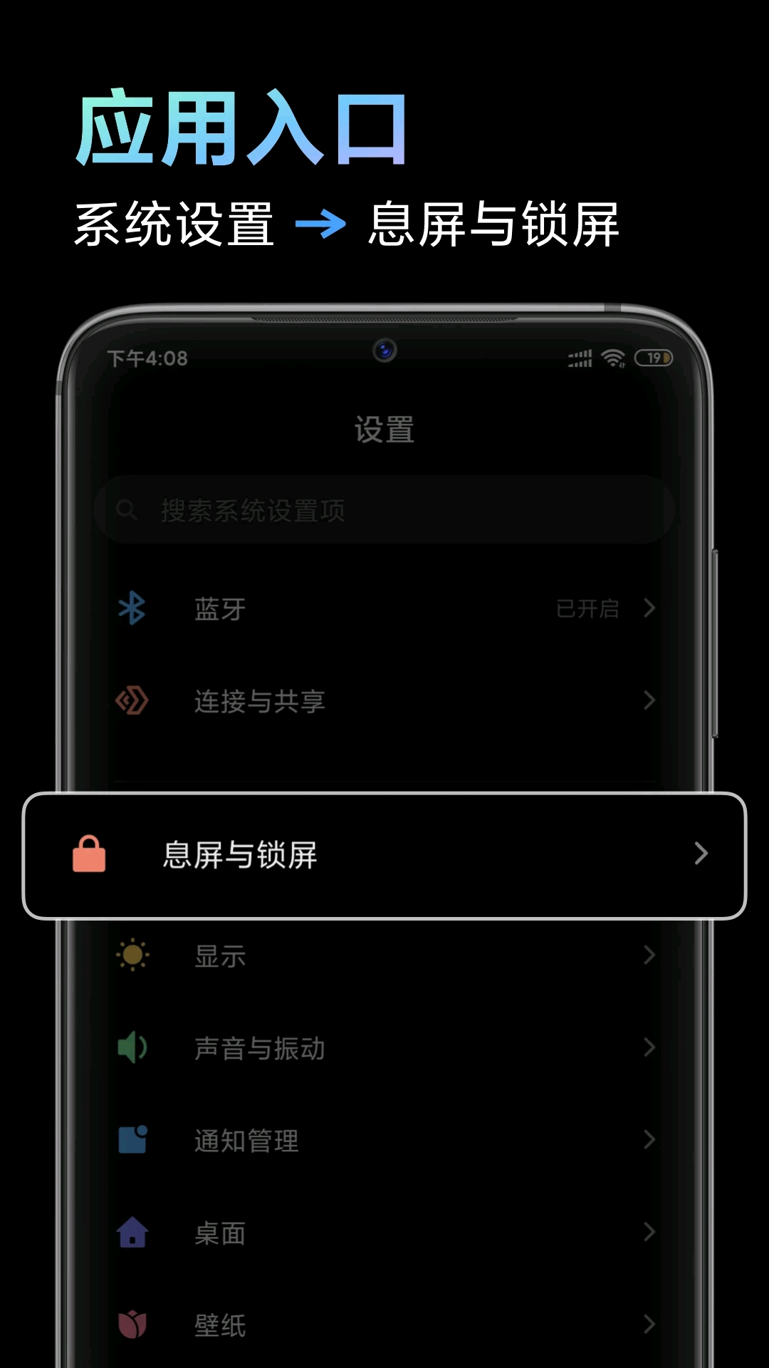 找到息屏设置:向下滑动找到 "息屏与锁屏"(部分旧版显示为" 锁屏与密码 ")