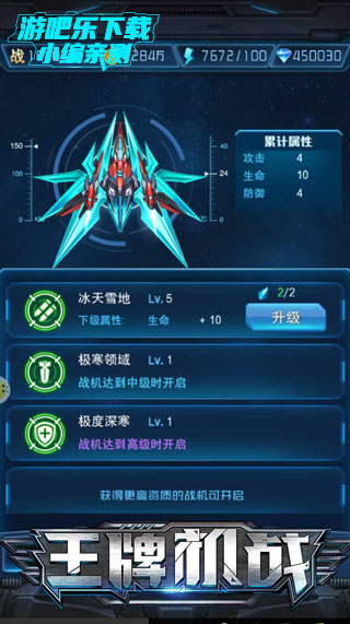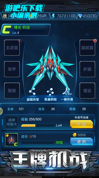 选择一架已激活的战机,可以在界面左上角看到它的品级评定(S\A\B\C)、阶段和当前等级。虽然品级无法更改,但指挥官们可通过收集同款战机碎片对它进行进阶升级。也可以使用经验道具对等级进行提升。每架战机的发展空间都非常大,只要悉心培养,无论是何品级的战机,都可以在游戏中有自己的生存之地,甚至横扫大佬战机!