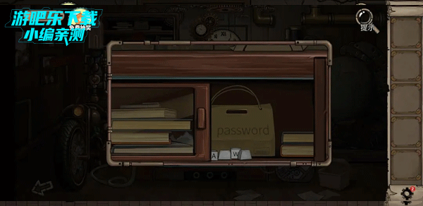 字母从左到右排列输入WUMA左边抽屉打开取出钥匙