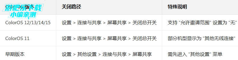 不同 ColorOS 版本的设置路径略有区别,以下是常见版本对照表: