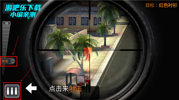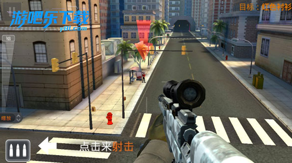 4、通过移动枪口来对准敌人,通过左边可以对倍镜进行放大和缩小,点击子弹进行射击;