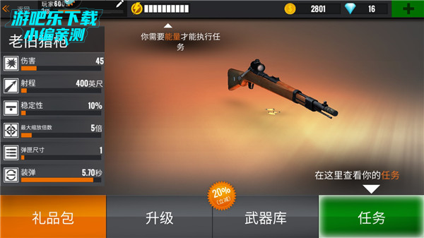 2、在这里可以对你的武器进行升级,这时我们点击任务;
