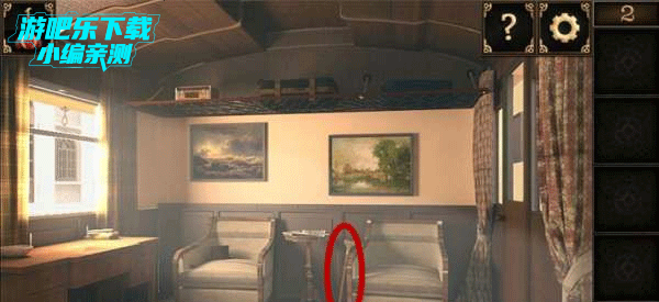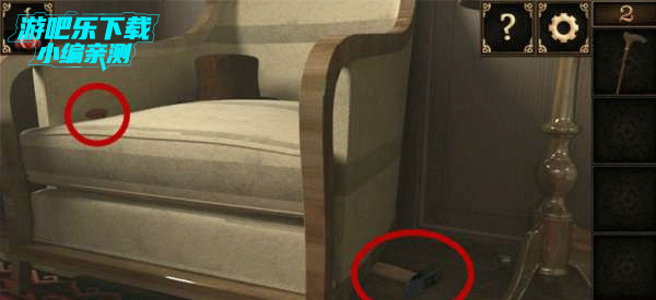 1、进入密室逃脱10第2关攻略,首先取得椅子旁边的手杖。