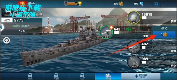 3、在开始战斗前,先将战舰进行强大以提升战斗力,这点对取胜至关重要