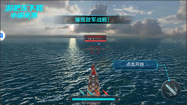 1、下载安装好战舰冲突原版手游,进入游戏,开始新手教程,点击开炮射击敌方战舰。