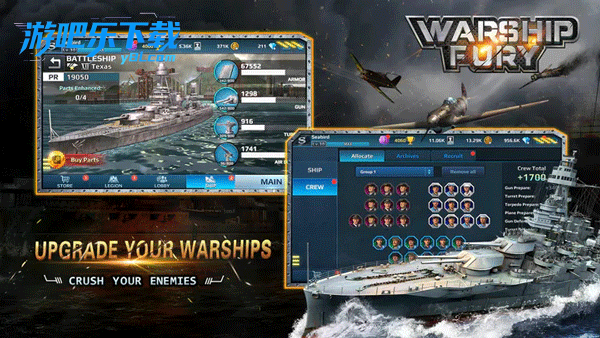 3、超多个战舰以及船员供玩家解锁使用,每一款战舰的属性都不相同。