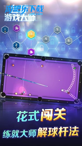 台球游戏大师以“全规则覆盖+拟真击球体验”为核心竞争力。游戏融合中式8球、国标、9球等12种专业台球规则,搭载超凡3D物理引擎精准还原球体旋转、碰撞轨迹,既支持单机闯关与AI切磋,又可实现全球玩家实时PK及俱乐部社交,搭配球杆养成、段位晋升等特色系统,成为台球爱好者的首选手游。