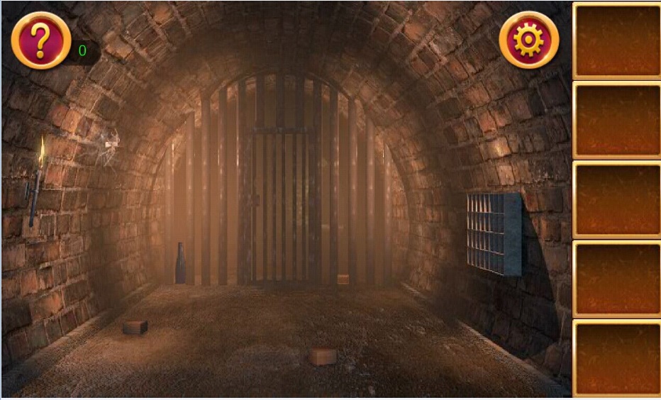 1、我们被关在一个地下通道中,首先收集地上的3个木盒,一个瓶子和左边墙上的火把。