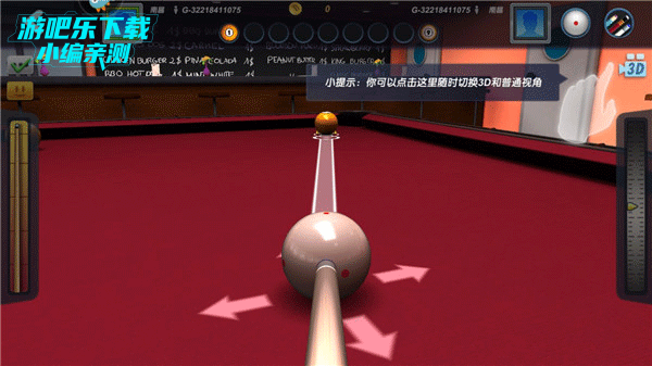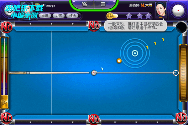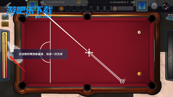 在这里,母球无法获得加塞和高低杆调整,玩家只能依靠角度和力度的调整,将球击入袋中。