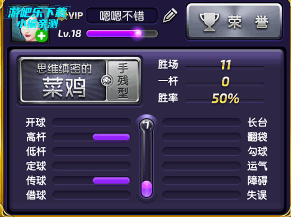 2、 “手残型”,玩家在20场内击球表现获得的称赞(高杆、低杆、长台等)。