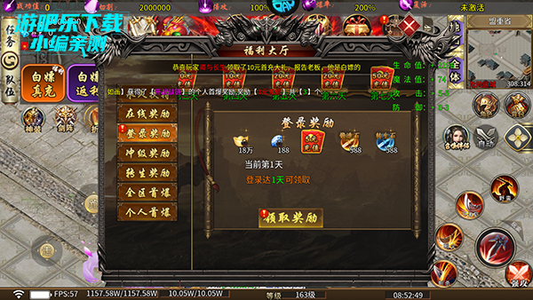 2、福利大厅:在这里可以领取到海量福利道具,即真充卡,元宝等。