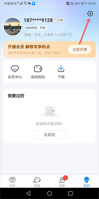 1、进入应用的【我的】页面中点击右上角的设置图标