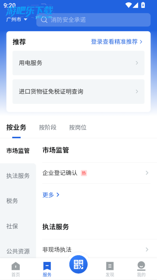 下载进入粤商通app,这里有很多的服务功能可以选择使用