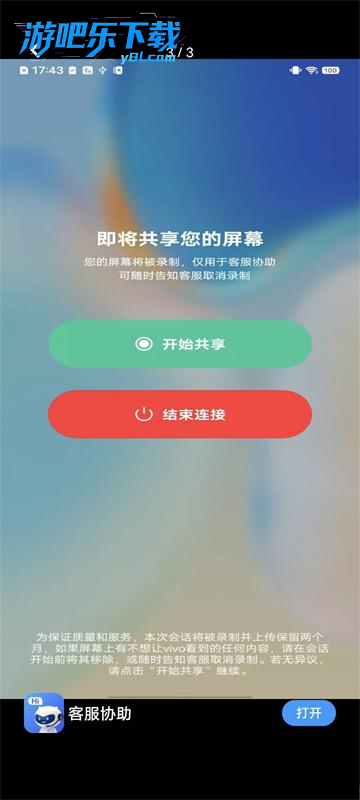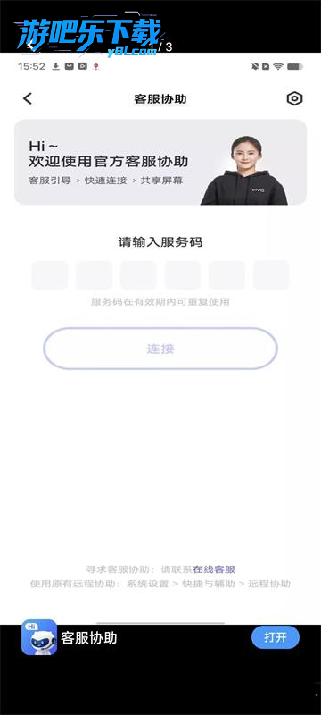 下载进入vivo客服协助软件,输入服务码进行协助