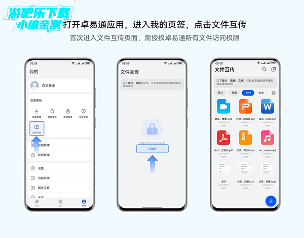 2、首次进入文件互传界面,需点击去授权,允许卓易通访问文件。