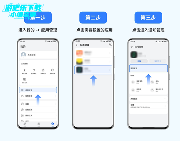 进入卓易通应用,点击我的>应用管理,选择需要设置的应用,点击通知管理进入详情页,可进行如下设置: