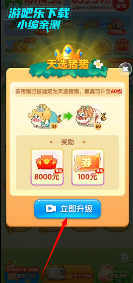 2、升级各种猪猪,提升猪猪的等级增加分数