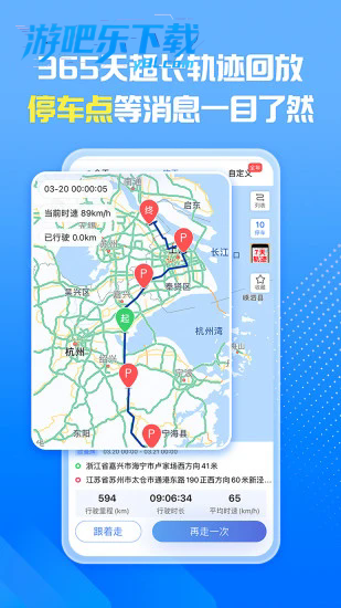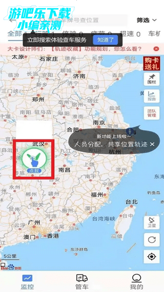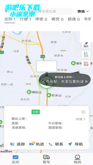 5、点击位置,显示该车辆行驶地点,轨迹,速度等详情。