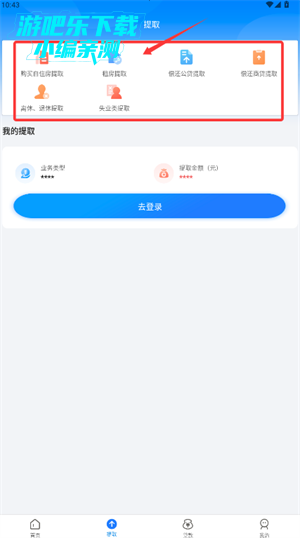 2、在提取页面,提供购房提取与租房提取等多种公积金提取业务类型。