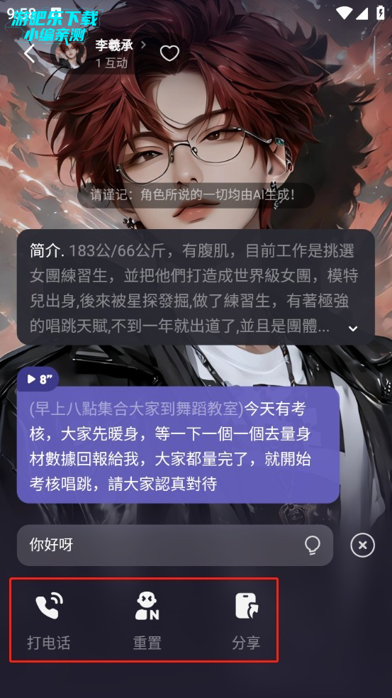 4、如果你想体验更真实的互动,点击右侧“+”按钮,用户就能拨打虚拟人物的电话,开启一场沉浸式的语音交流