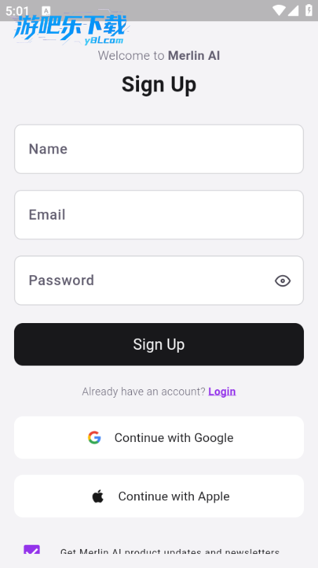下载进入Merlin AI软件,输入邮箱地址和密码进行登录