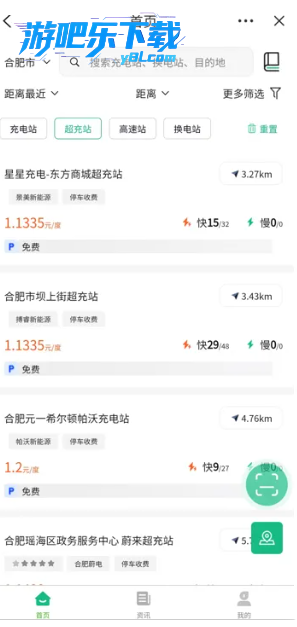 2、可以看到附近有很多的充电站,你也能选择价格低,或者空闲多的,直接搜索;