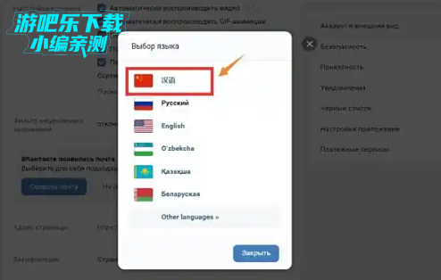 选择完中文(汉语)后,VK平台的语言设置会自动更改为中文。