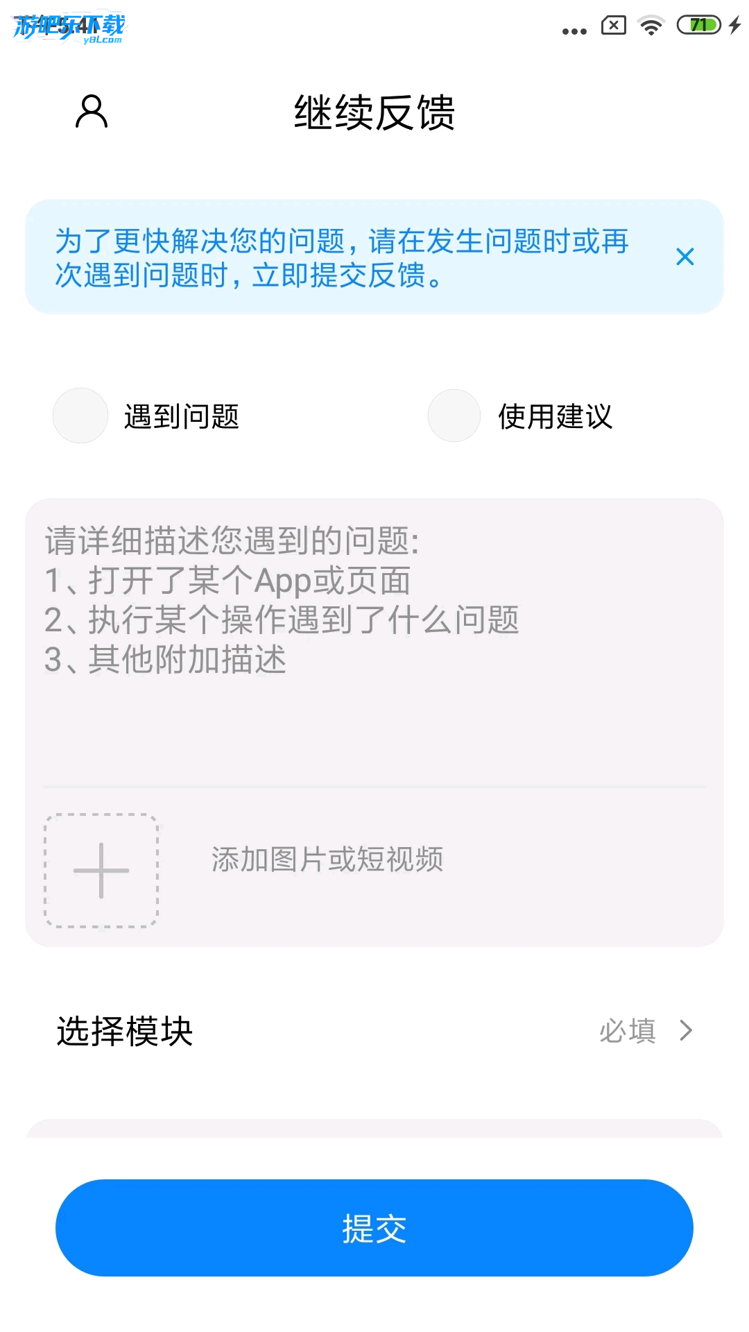 您主动提交反馈并勾选了 "上传问题日志" 时