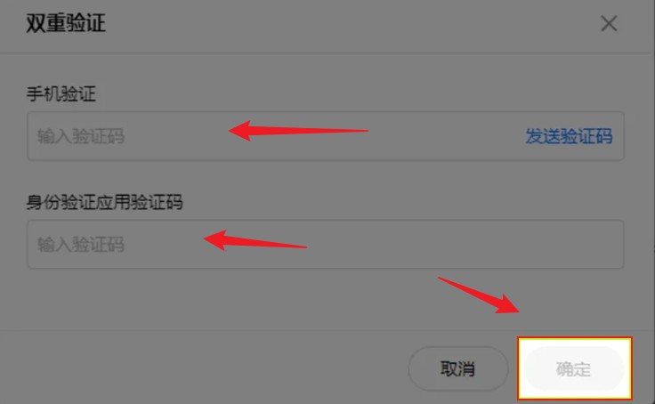 3.输入短信验证码,和谷歌验证码,点击右下方【确定】。