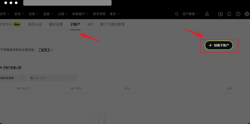 子账户是您在欧易开设的一种账户类型,与主账户绑定。您可以创建多个子账户与主账户绑定,实践不同交易策略并降低风险。子账户支持现货,现货杠杆、合约交易和策略交易,不支持提币。