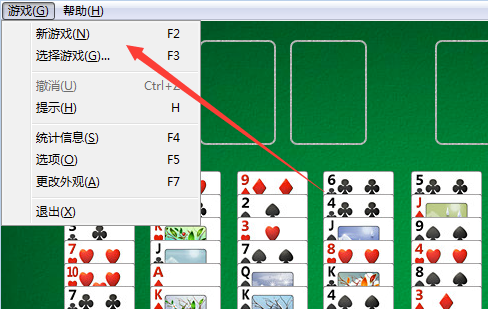 1、双击空当接龙游戏,就自动开局了,如果不满意牌组,可以点击游戏菜单,选择新游戏,重开一局。
