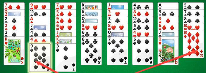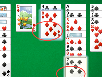 例如:♥️7可以放在♠️8或♣️8下面(红黑交替),但不能放在♥️8下面