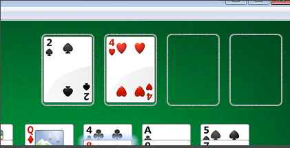 3、这边四个空框处,首先放入的是A,如果出现A上面的2,如果花色是一样的,那么会自动吸附上去,遵循个从小到大的顺序A23456这样的。