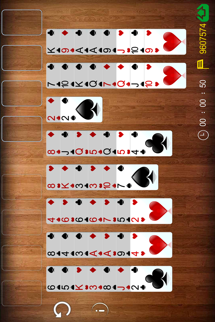 6、游戏最终,只有把牌从A到K摞列在右上方空框处,就算赢了。