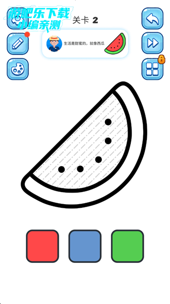 3.现在可以上色了,首先给西瓜瓤上色,选择颜色。