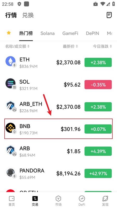 进入【交易】页面,—点击左上角币对框【BTC/USDT】。