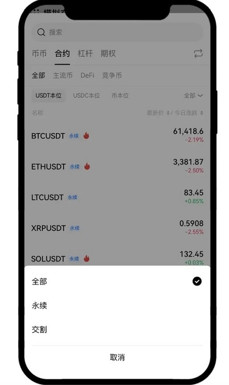 (1)永续合约和交割合约用户可以通过做多或者做空,来获取数字资产价格上涨或下跌的收益。