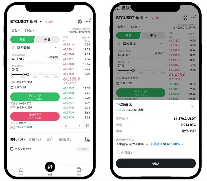 3.用户开仓的同时可以在【下单二次确认】里设置止盈止损,以规避风险,锁定收益。