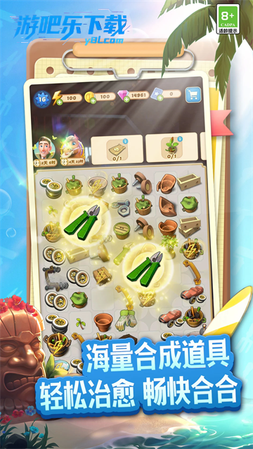 棋盘中的物品主要分为两种,分别是产出源道具和合成物品,产出源道具点击可以获得不同的合成物品