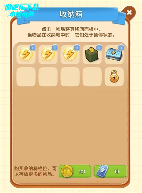 4、消耗金币和点券可以解锁更多收纳箱格子