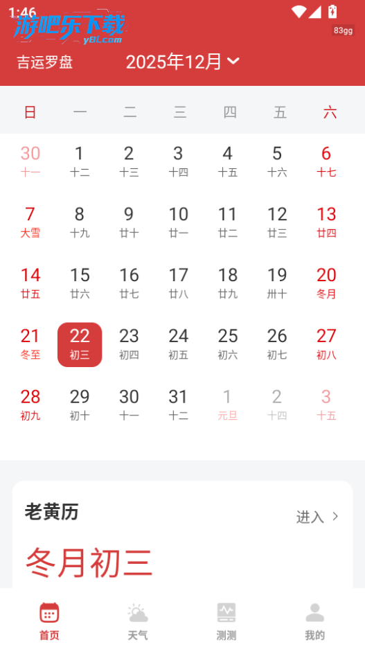 下载进入中历万年历软件,可以在这里看日历和老黄历