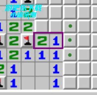 橙色箭头所指的2,周围已有1个雷通过其他方式判出,因此真实数字为1