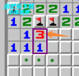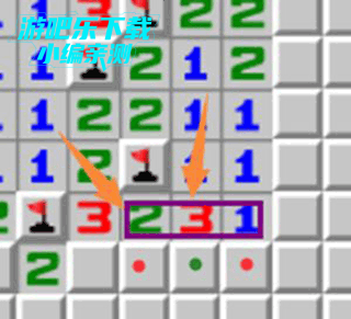 橙色箭头所指的3,周围已有1个雷通过其他方式判出,因此真实数字为2