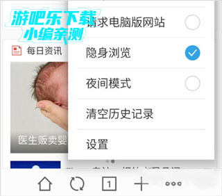 2、如下图所示,勾选“隐身浏览”即可不产生历史记录,即“无痕浏览”;